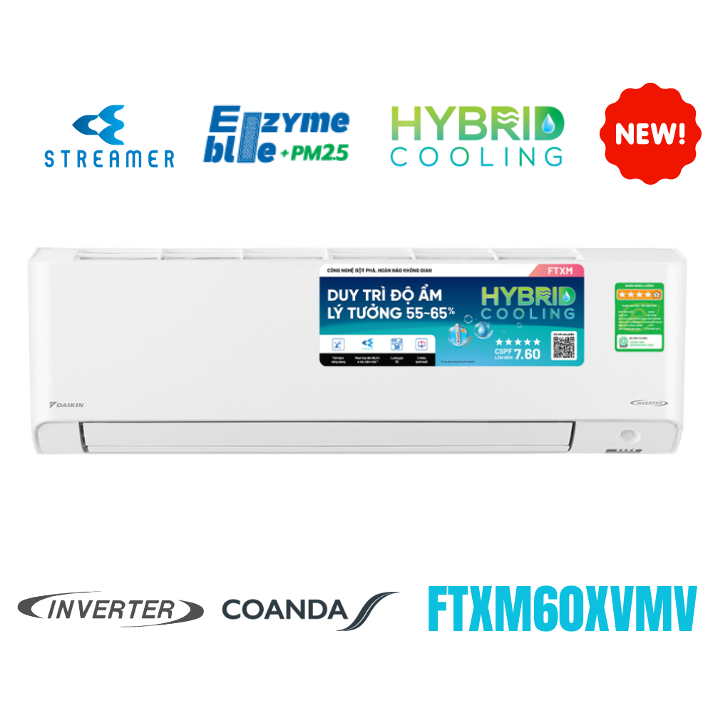 Đó là lý do Daikin phát triển công nghệ Hybrid Cooling giúp kiểm soát và cải thiện các tình trạng khó chịu trên. Hybrid Cooling hoạt động dựa trên một cảm biến đo độ ẩm và công nghệ kiểm soát khử ẩm trên dàn lạnh, từ đó kiểm soát đồng thời nhiệt độ và độ ẩm mang lại cho người dùng sự thoải mái tối đa, ngăn ngừa sự phát triển của nấm mốc, vi khuẩn, hạn chế các bệnh về hô hấp, bảo vệ làn da, bảo vệ nội thất trong gia đình và giảm tiêu hao năng lượng. Với chuẩn cân bằng ẩm cùng công nghệ Hybrid Cooling, máy điều hòa DAIKIN FTXM luôn kiểm soát độ ẩm ở mức tối ưu – từ 55-65%.