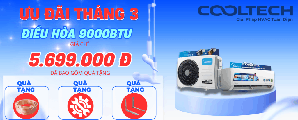 🎉 Khuyến Mãi Tháng 3 – Mua Điều Hòa Tại Cooltech Tặng Ngay 3M Ống Đồng, Giá Đỡ Dàn Nóng & Công Lắp Đặt